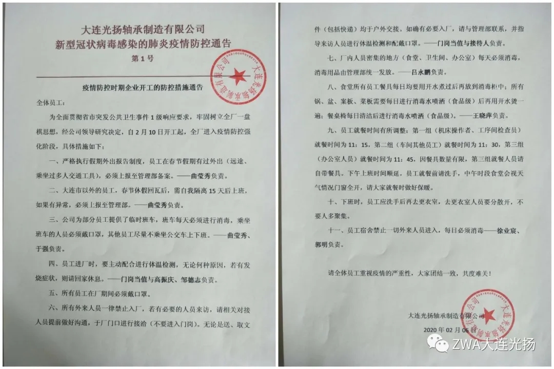 這次疫情,如同一場無聲的戰(zhàn)爭,在這次戰(zhàn)斗中,大連光揚軸承制造有限公司的領(lǐng)導班子不等不靠、先知先覺迅速做出抗疫響應: